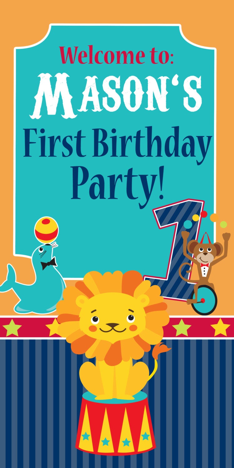 Editable Blue Vertical Happy Birthday Banner With Balloon