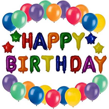 Foil Balloon Letter Banner Happy Birthday 25 Latex Balloons Multicolored Rainbow Theme