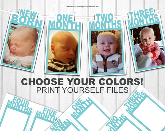 Choose Your Color 12 Month Photo Baby Birthday Banner Printable First Year Banner Monthly Color Photo Banner Milestone Photo Banner
