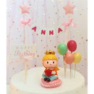 Happy Birthday Cake Topper Girl On Cushion With Personalised Banner Party Decor Balloons