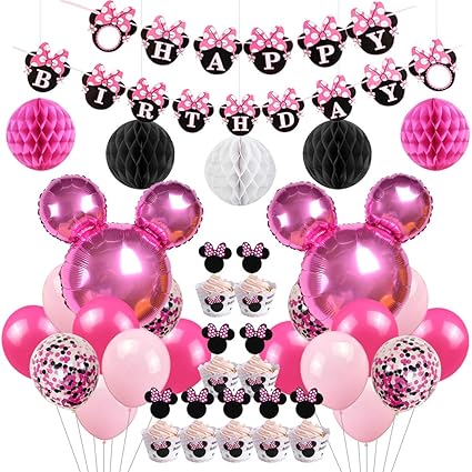 Minnie Mouse Birthday Party Supplies Decorations Minnie Mouse Balloons Cupcake Toppers Wrappers For Girls 1st 2nd 3rd Birthday